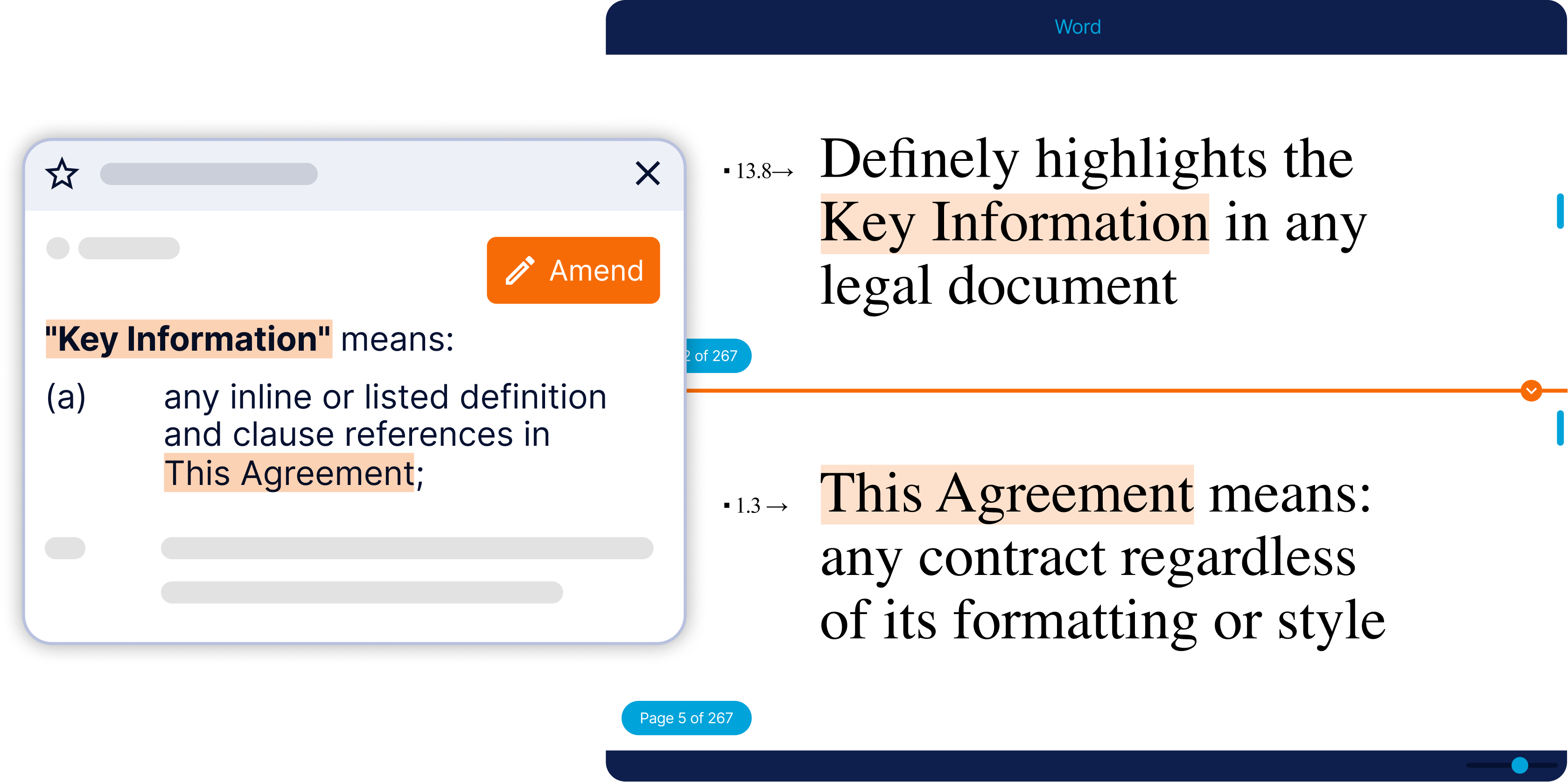 Access and edit all information, including defined terms and cross-references, without leaving the clause or provision you’re working on. All in Word.